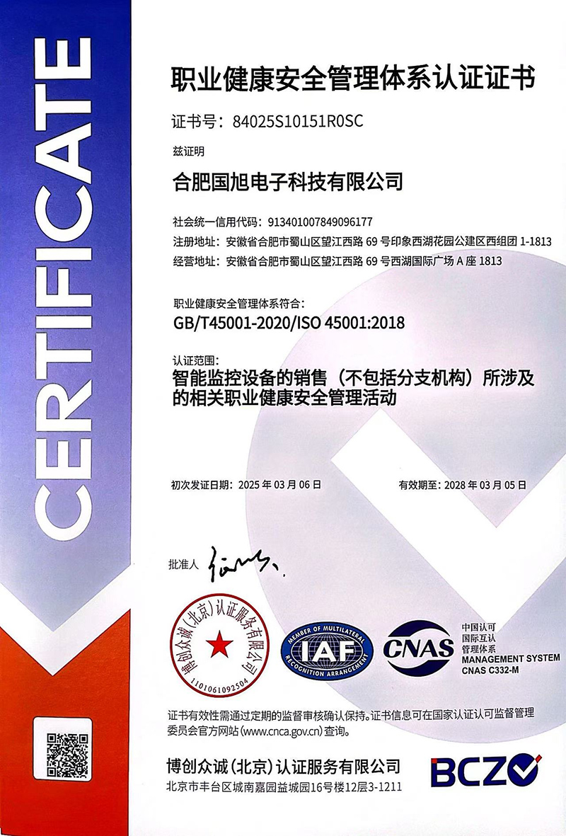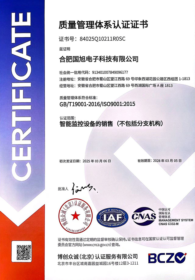 合肥國旭電子科技有限公司創(chuàng)立于2006年,總注冊資本2008萬。公司總部地址位于安徽IT主流商圈核心,合肥市蜀山區(qū)望江西路與肥西路交口西湖國際廣場。 公司是專業(yè)從事智能防雷檢測系統(tǒng)、智能化工程設計與施工工程、防雷設計施工工程、數(shù)據(jù)中心機房、消防工程、網(wǎng)絡監(jiān)控安全技術防范工程、及智能變電站安全預警系統(tǒng)。